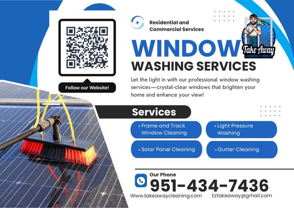 Take Away Window Cleaning is a licensed and insured window cleaning company based in Southern California, providing professional, reliable, and eco-friendly services to both residential and commercial properties. Our mission is to deliver high-quality cleaning solutions that enhance property value, curb appeal, and energy efficiency—one window at a time.